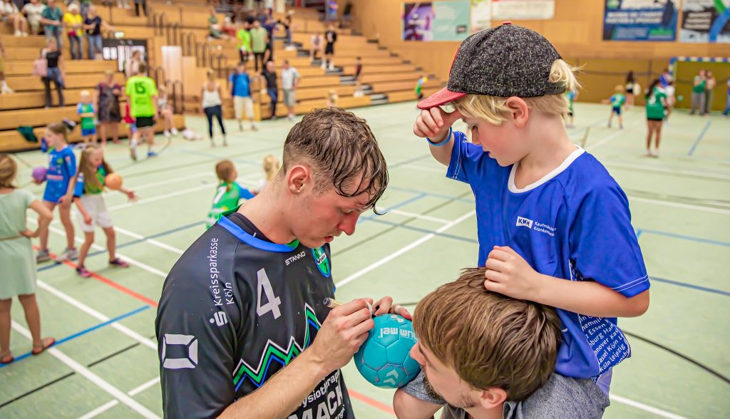 Hexenkessel, familiärer Zusammenhalt, hochklassiger, leidenschaftlicher Sport auf Top-Niveau: Ein Handballspiel am Sonnenhügel hat Event-Charakter, der begeistert. Das ist mittlerweile bis weit über die Grenzen der Sieben Berge in der Handball-Szene bekannt. Bjarne Steinhaus, Geschäftsführer der HSG Siebengebirge und gleichzeitig Spieler im Oberliga-Team, freut dies in doppelter Hinsicht: „Selbst nach vielen Heimspielen am Sonnenhügel ist es immer wieder etwas ganz Besonderes, wenn du als Spieler da unten stehst und auf die Ränge schaust. Das macht mich stolz. Als Geschäftsführer hingegen spornt es mich an, die Heimspieltage für die Fans und vor allem die aktiven Juniorinnen und Junioren noch attraktiver zu gestalten. Dazu planen wir in den nächsten Wochen und Monaten verschiedene Aktionen.“