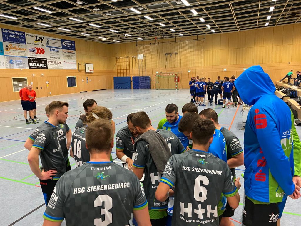 In der zweiten Hälfte verschliefen die Grün-Blauen regelrecht den Wiederanpfiff. Zu früh wurde abgeschlossen und auch beste Wurfchancen verfehlten das Ziel. Infolge dessen konnten sich die Bergneustädter weiter absetzen und in der 43. Minute stand eine Sieben-Tore-Führung des TVB auf der Anzeigetafel (17:10). Dennis Weber nahm eine Auszeit und stellte die HSG auf eine 5:1 Abwehr um. Durch diese Umstellung konnte man die Gastgeber etwas verunsichern und über Ballgewinne und Tempogegenstöße begann die Aufholjagd: Fünf Tore in Folge erspielten sich die HSG und somit stand es in der 52. Spielminute nur noch 17:15. Nun brodelte es in der Halle und die lautstarke Unterstützung von der Tribüne machte die letzten acht Minuten noch einmal zu einem spannenden Schlagabtausch. In der 54. Minute verwandelte Tim Peter Nüsse einen Siebenmeter-Strafwurf, wodurch die Siebengebirgler auf ein Tor herankamen (18:17). Der BTV geriet jedoch nicht ins Wanken und baute die Führung wieder auf zwei Tore zum 19:17 aus. In der 56. Minute vergab die HSG einen weiteren Strafwurf und wurde zudem noch mit einem Gegentor bestraft. Beim 20:17 für die Hausherren gelang es den Grün-Blauen noch einmal, einzunetzen, aber die Zeit reichte nicht mehr für eine weitere Aufholjagd. So stand es am Ende 20:18 für den TV Bergneustadt.
