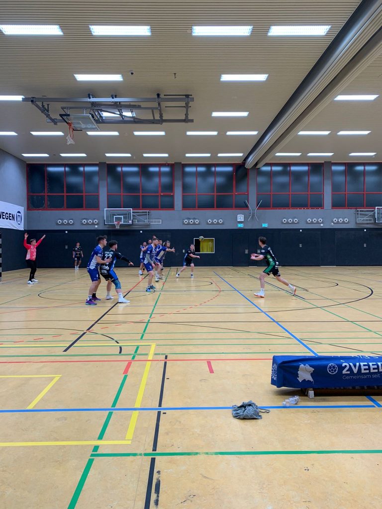 Die Partie begann ausgeglichen und war in den Anfangsminuten von einer echten Abwehrschlacht geprägt: erst in der 9. Spielminute fiel der erste Treffer der Begegnung. Nach dem Führungstor der Hausherren fand die “Dritte” der HSG jedoch schnell ins Spiel und hielt bis zur 16. Minute beim Stand von 5:5 voll dagegen. Besonders aus dem Rückraum erspielte sich Siebengebirge immer wieder gute Abschlüsse. In dieser Phase des Spiels präsentierte sich das Team konzentriert, mutig im Angriff und deutlich stabiler als noch in den Wochen zuvor. Eine kurze Schwächephase der Gäste kurz vor dem Ende der ersten Halbzeit sowie eine vierminütige Zeitstrafe wegen Meckerns nutzte die Reserve von Geislar-Oberkassel konsequent aus und setzte sich bis zur Pause auf 14:9 ab.