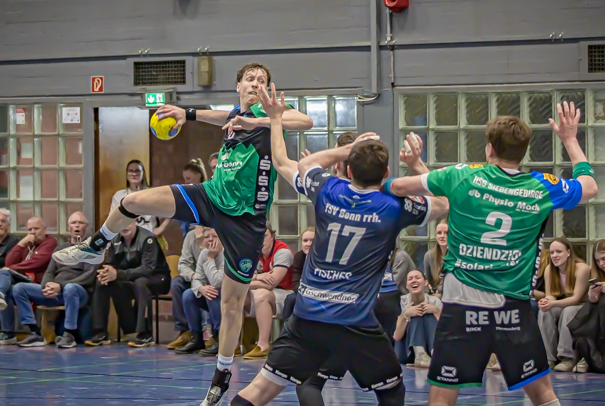Viel vorgenommen hatten sich die Regionalliga-Herren der Handballer aus dem Siebengebirge für das Derby am vergangenen Samstag gegen die TSV Bonn rrh. Am Ende konnte jedoch nichts Zählbares verbucht werden und die Grün-Blauen mussten sich verdientermaßen mit 22:27 gegen die Gastgeber aus Beuel geschlagen geben.