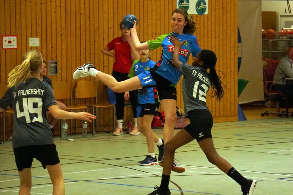 Am Sonntagmittag um 12:30 Uhr kam es dann zum zweiten Saisonspiel an zwei Tagen für die Siebengebirglerinnen. Mit einer bärenstarken Abwehr- und Torhüterleistung ließ die HSG in der ersten Halbzeit nur zwei Tore der Palmersheimerinnen zu, tat sich aber auch im Angriff gegen die Defensive der Gäste sehr schwer. Trotzdem stand es zur Halbzeit 8:2 für die Grün-Blauen.