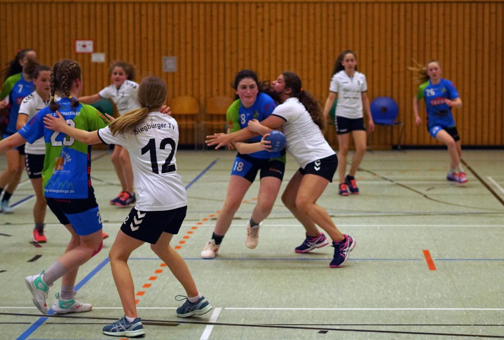 Am Samstagnachmittag stellte sich der Tabellenzweite TV Siegburg am Oberpleiser Sonnenhügel vor. Es wurde der erwartete heiße Tanz zweier starker Mädchenmannschaften. Beide Teams agierten offensiv in der Abwehr, wobei gerade Siegburg sehr körperbetont aber nie unfair spielte. So entwickelte sich ein enges Spiel. Die HSG fand immer wieder gute Lösungen über den Kreis und konnte sich nach dem knappen Halbzeitstand von 13:11 über 19:15 und 25:20 entscheidend absetzen. Der Applaus am Schluss war die Belohnung für ein sehr schönes Handballspiel. Für die Mädels der HSG hieß es dann: Beine hochlegen, das Heimspiel der Regionalliga-Herren verfolgen und dann auf den Sonntag vorbereiten. Denn mit dem TV Palmersheim stand eine weitere, unangenehm zu spielende Mannschaft bereit, die der HSG erneut alles abverlangen würde.