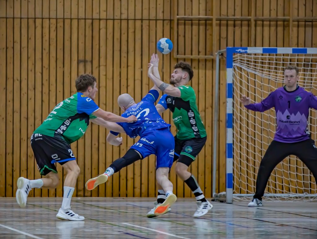 Viel vorgenommen hatten sich die Handball-Herren der Grün-Blauen für das am vergangenen Sonntag stattfindende Top-Spiel der Oberliga Nordrhein beim Tabellenzweiten TuS Königsdorf. Allerdings musste sich das Team von Trainer Lars Degenhardt nach 60 schwachen Minuten verdient den Gastgebern mit 35:38 geschlagen geben. Im Duell der bis dato verlustpunktfreien Spitzen-Teams der Liga war es die erste Niederlage der Siebengebirgler der Saison.