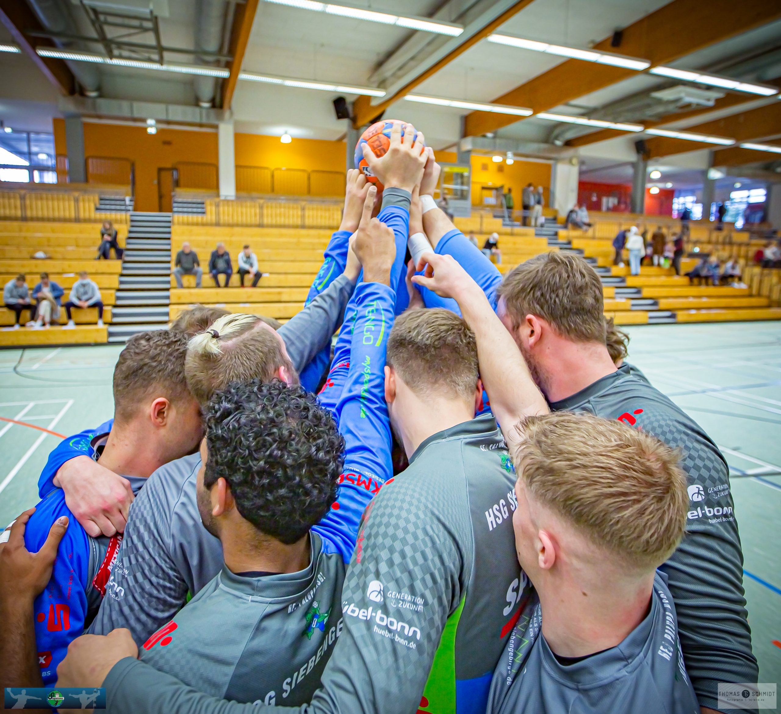 In der zweiten Halbzeit verschliefen die Grün-Blauen den Start komplett. Die Hausherren konnten sich innerhalb von fünf Minuten auf 17:12 absetzen. Somit mussten die Siebengebirgler erneut einen Rückstand aufholen. Mit großer Leidenschaft und absolutem Willen, etwas Zählbares mitzunehmen, kämpften sich die Siebengebirgler Stück für Stück an die Rheinbacher hera. In der 53. Minute waren die Grün-Blauen wieder bei einem Tor Rückstand in Schlagdistanz. Während die Rheinbacher keine Lösungen im gebundenen Angriffsspiel fanden, konnten die Siebengebirgler eine sehr gute Deckung stellen. Zehn Sekunden vor Schluss erzielte Rückkehrer Bastian Wilcke mit seiner ersten Aktion im Angriff den Ausgleichstreffer zum 24:24 Endstand, den die zahlreichen mitgereisten Fans der Königswinterer Handballer lautstark bejubelten. Somit konnten die HSGler einen Punkt aus Rheinbach entführen, der in der Endabrechnung der Liga noch wichtig werden könnte.
