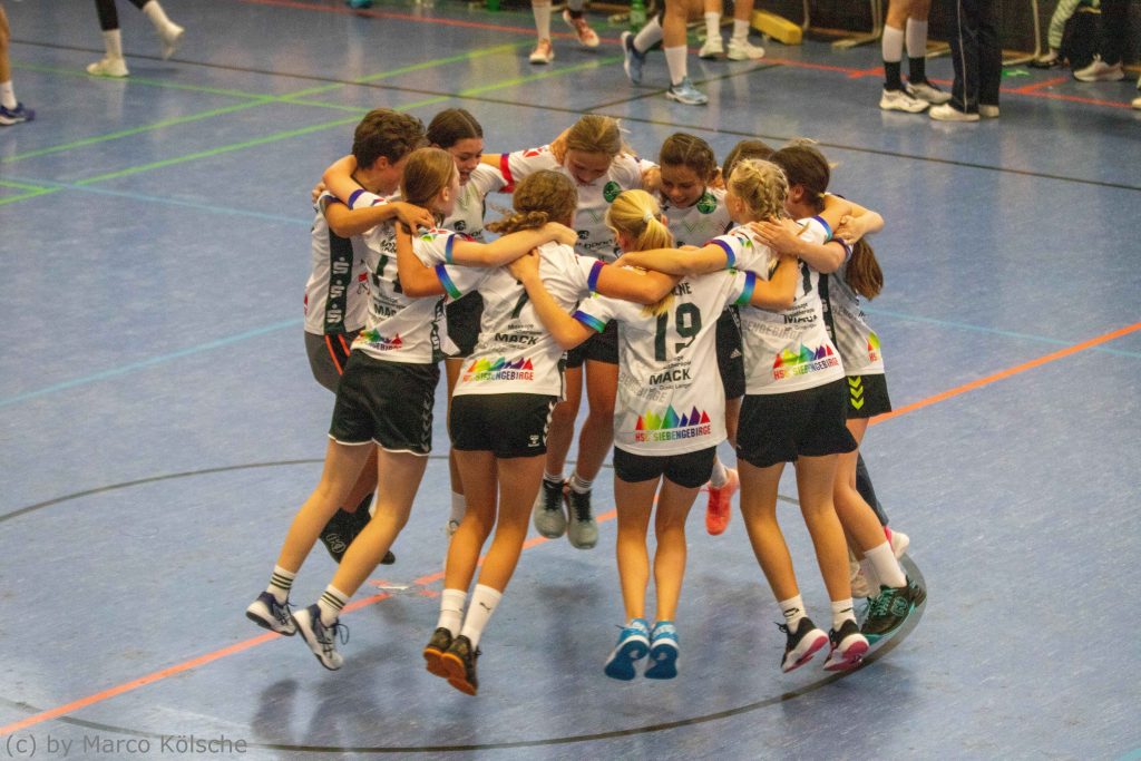 Ein wenig nervös gingen die Grün-Blauen ins Spiel. Aber es wurde schnell klar, dass an diesem Tag alles drin war. Nur beim 1:1 gelang den Beuelerinnen der Ausgleich, in der restlichen Zeit führte nur die HSG. Allerdings war das Spiel bei Weitem kein Selbstläufer. Die HSG-Mädchen mussten alles geben, um den starken Gegnerinnen in eigener Halle Paroli zu bieten. Mehrfach konnten die jungen Siebengebirglerinnen ihren Vorsprung auf vier Tore ausbauen, ohne dass es ihnen gelang „den Sack zuzumachen“. Bonn konnte sich immer wieder herankämpfen bzw. die HSGlerinnen scheiterten oft an der eigenen Nervosität und leisteten sich zu viele technische Fehler sowie Fehlwürfe.
